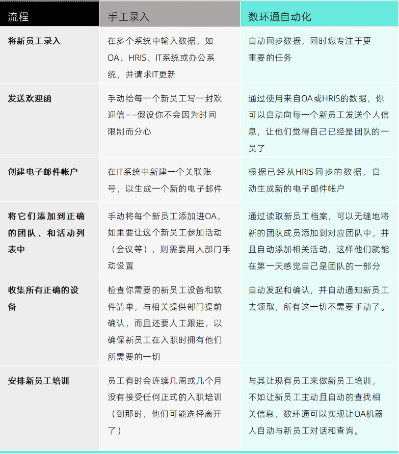 但通過數環通,這些根本不必是手工流程,通過數環通自動化的方式來將新員工入職時間縮短95%以上。